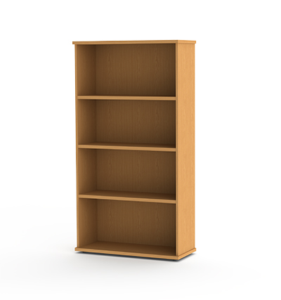 A sturdy 19mm melamine four-tier bookcase with integrated drawers, offering a combination of open shelving and concealed storage for a versatile and organised workspace.