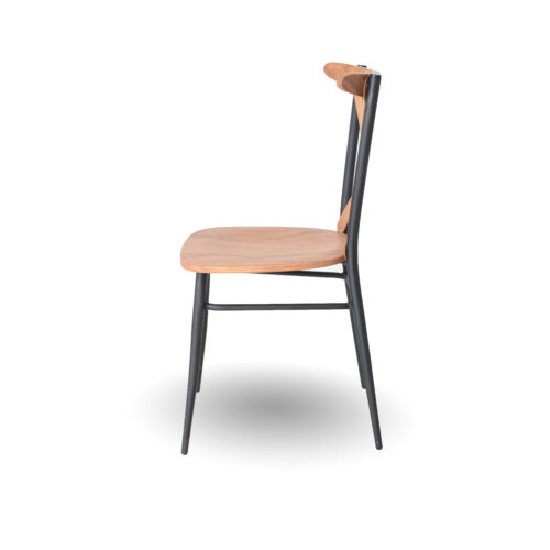 • Versatile bistro chair with a durable steel frame, available in three distinct back styles. Choose between a fabric-upholstered or wooden seat for a tailored look that blends style with lasting comfort.