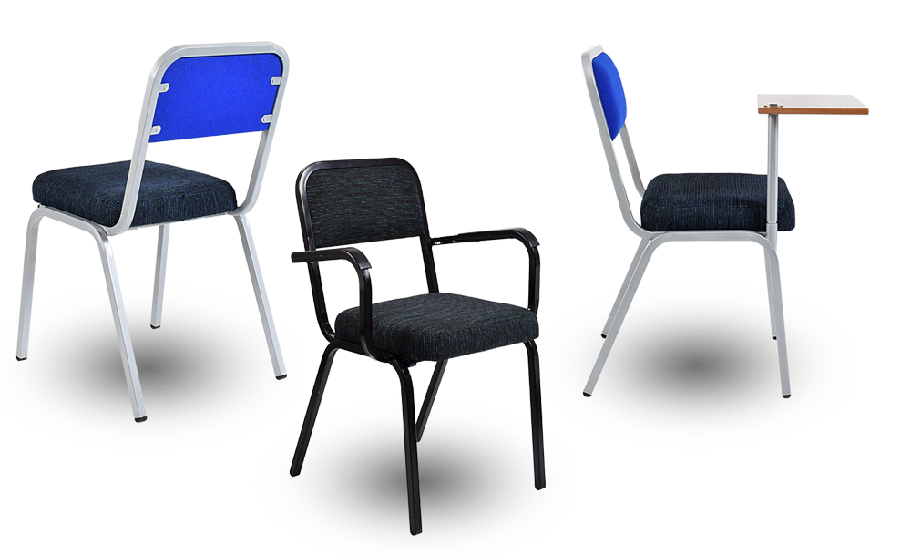 The Rickstacker is a durable stacking chair featuring a 22.23mm square tubing steel frame, designed for versatile seating needs.