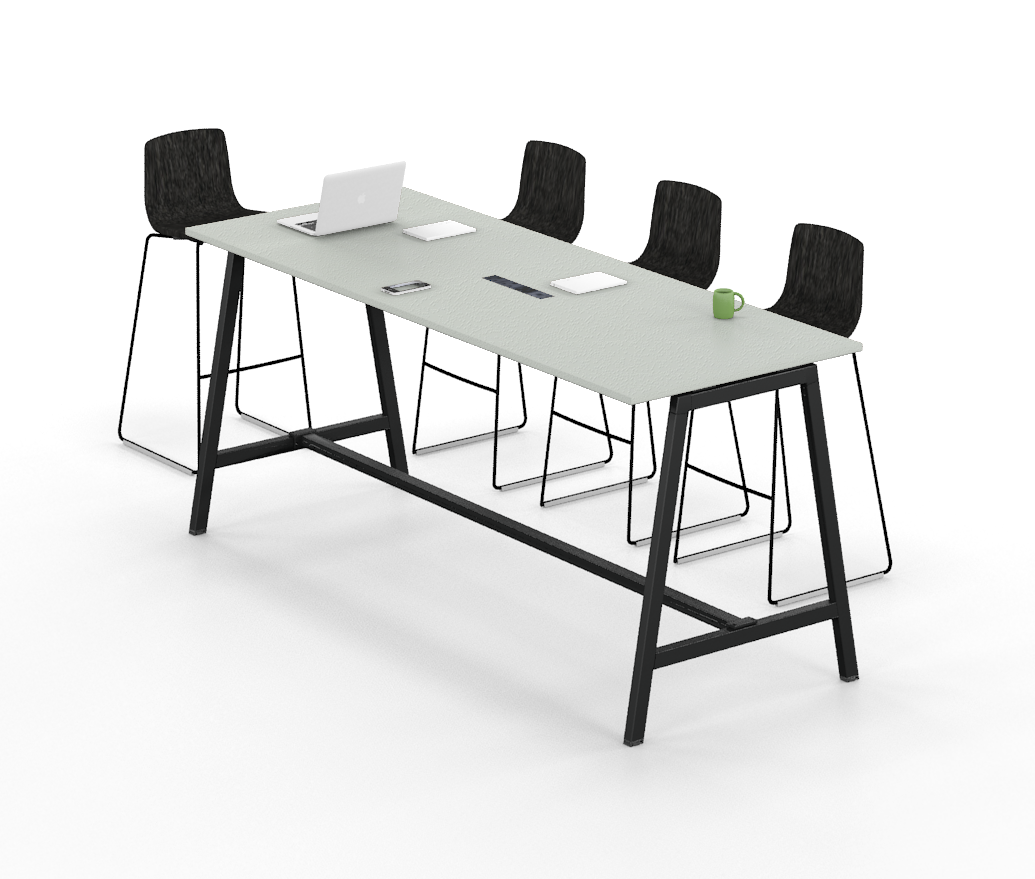 For a more formal collaborative setting, pair a Simply low table with Simply angled legs, attached to a media wall on one end that can accommodate a larger screen.