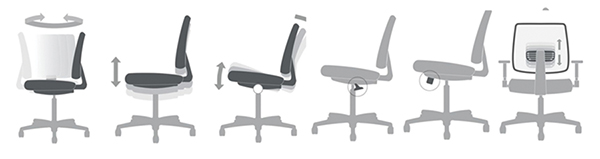 Pull lever upwards for constant back contact – free floating. Push lever downwards to lock back in any position.