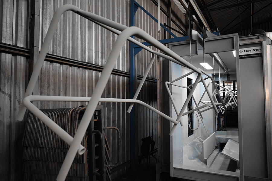 Powdercoating: Frame : Ø25.4mm Round Tubing. Powdercoated 60-70 Mic Sandpaper Matt Black.