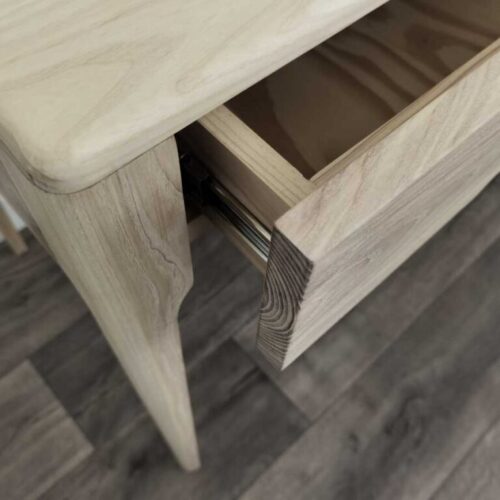 The Chevron Desk is a contemporary design featuring American White Ash, highlighted by its distinctive chevron-patterned drawer fronts and finely crafted edge detailing. Finished with a pigmented oil and clear furniture wax, it enhances the wood’s natural beauty while ensuring lasting durability. (1100 x 500 x 780mm)
