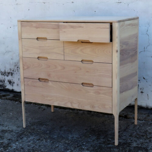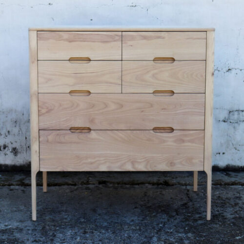 The Outeniqua Chest is a beautiful, Mid-Century inspired piece – uniquely designed and beautifully made from a combination of American White Oak or American White Ash and other board products. The piece is sealed with a pigmented oil and a clear furniture wax, thus enhancing the natural beauty of the timber. (920x530x990mm)