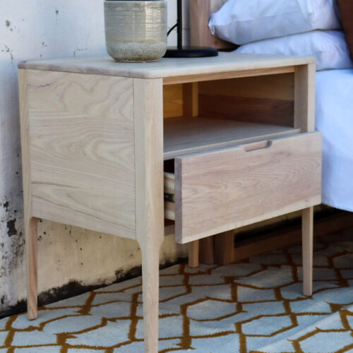 The Outeniqua Pedestal is a beautiful, Mid-Century inspired piece – uniquely designed and beautifully made from a combination of American White Oak or American White Ash and other board products. The piece is sealed with a pigmented oil and a clear furniture wax, thus enhancing the natural beauty of the timber. (520 x 440 x 630mm)